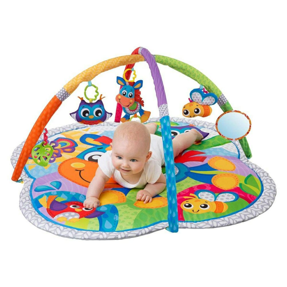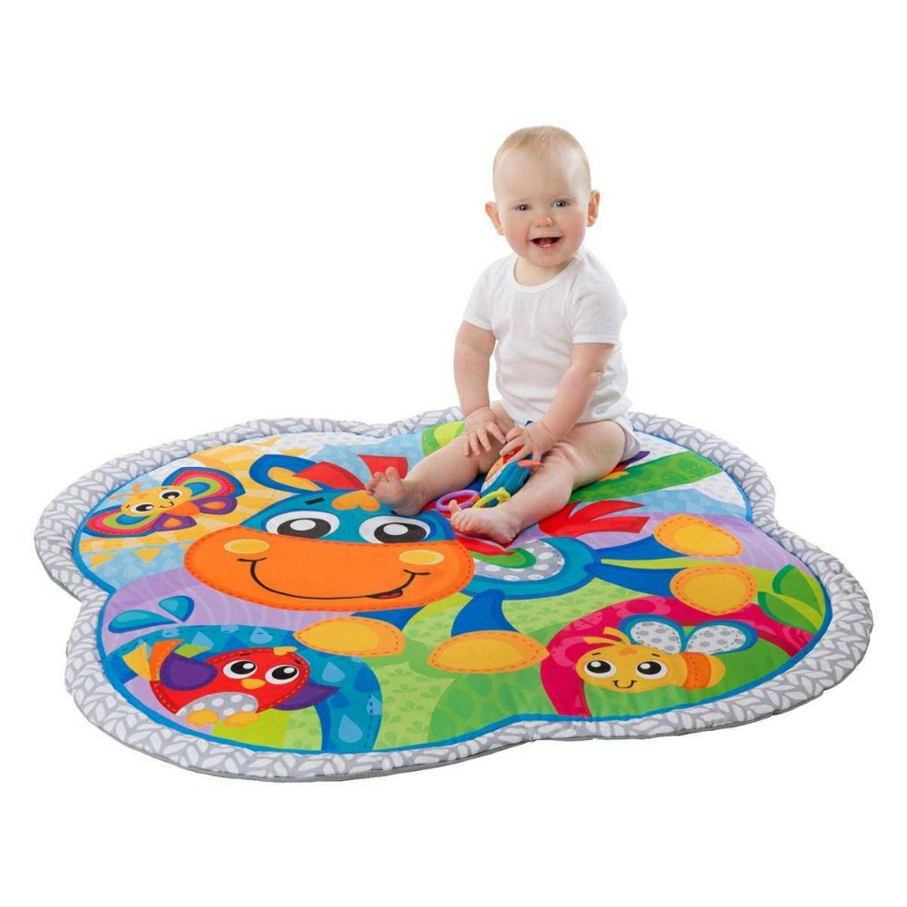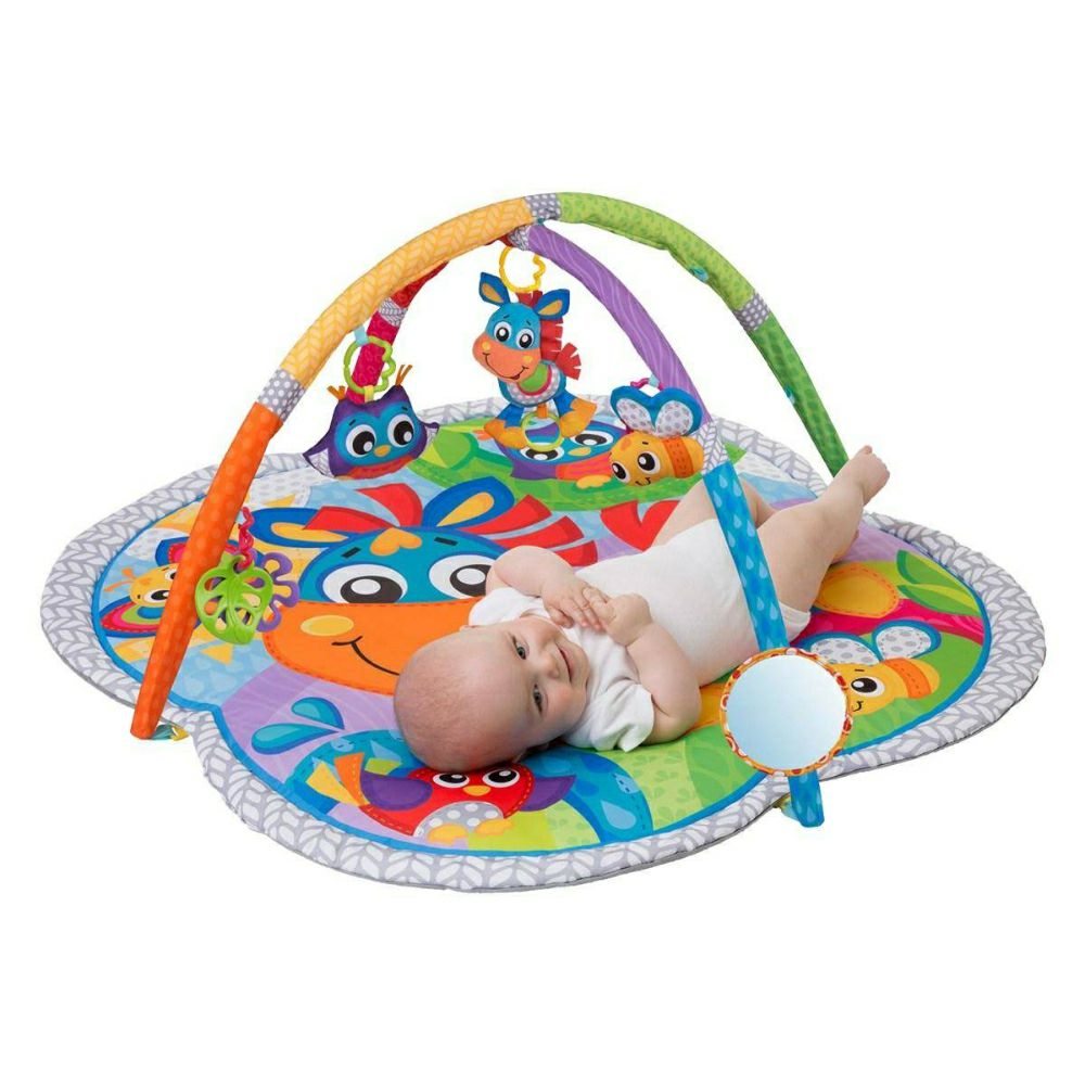 • Подлогата за играње Playgro му дава на детето многу простор за движење. Таа е дизајнирана да ја поттикне детската разиграност и да создаде совршен простор за развој на сетилата на детето. Опремена е со машна на која се закачени играчките кои го стимулираат развојот на детето на координација рака-око. Лакот може да се отстрани по желба. Шарените бои на подлогата го привлекуваат вниманието на детето. Има и мало тркалезно огледало кое може да се постави насекаде.