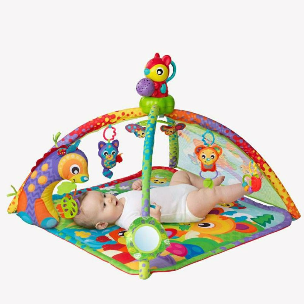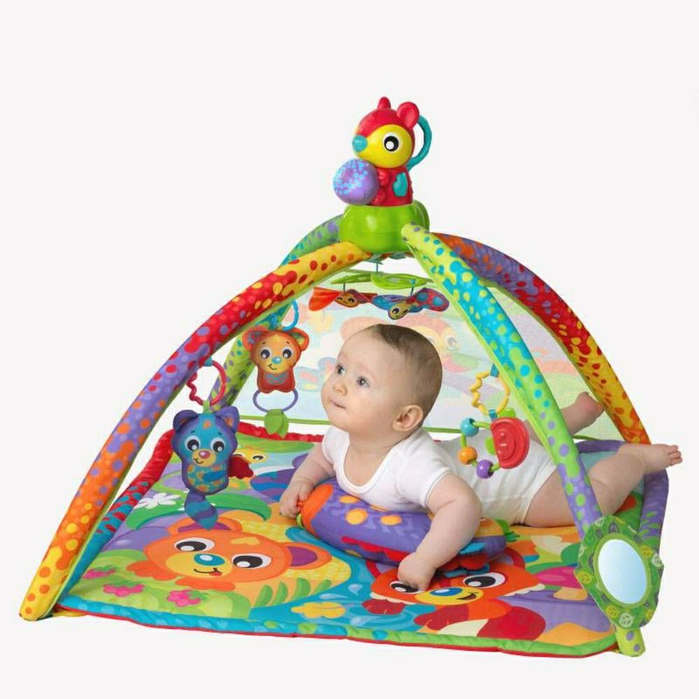 • Дозволете му на вашето малечко да си игра со оваа неверојатна теретана со проектор за музика и светла Woodlands. Овој комплет вклучува 3 монтажни висечки играчки и една перница за стомак. Постојат три режими. Музика и светлина со 4 забавни мелодии. Ноќно светло и проектор со нежна мелодија.