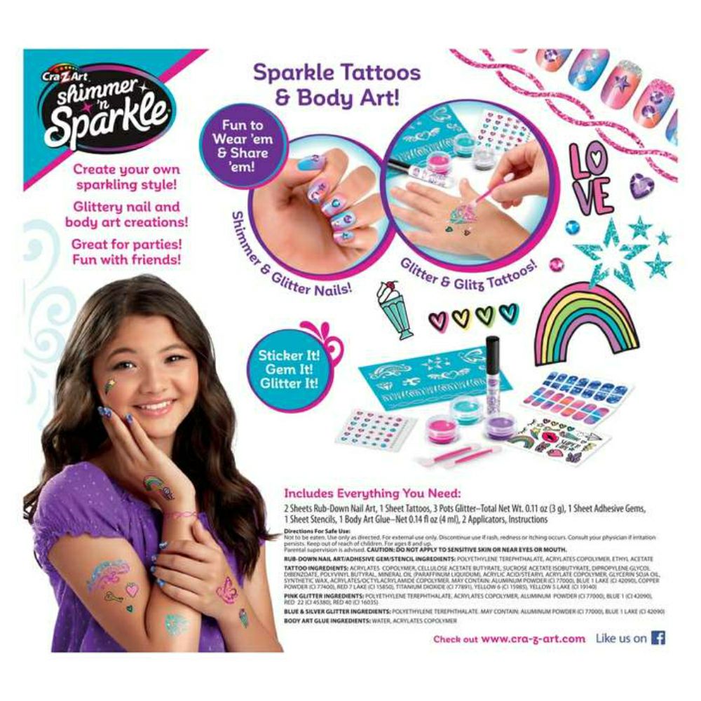 - Вклучува 4 лакови, сјај, налепници за нокти, нокти, креми за тело и многу повеќе.