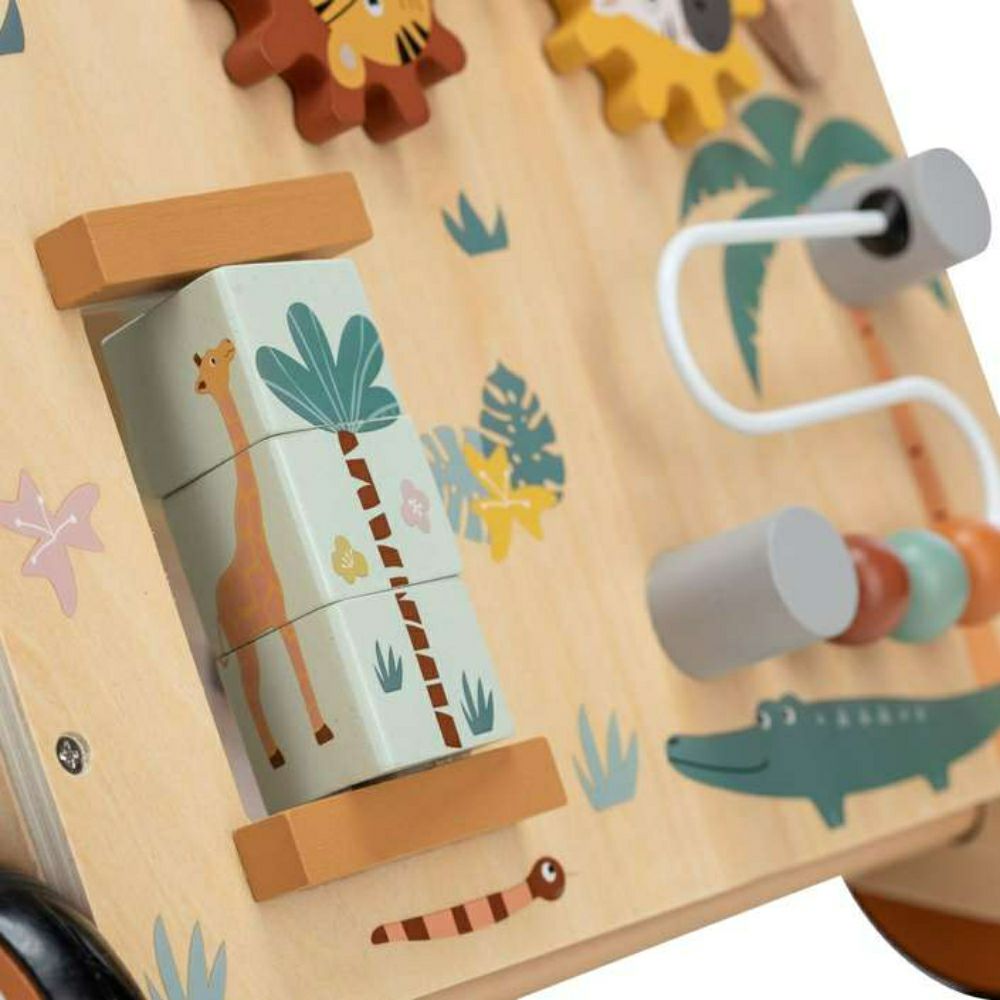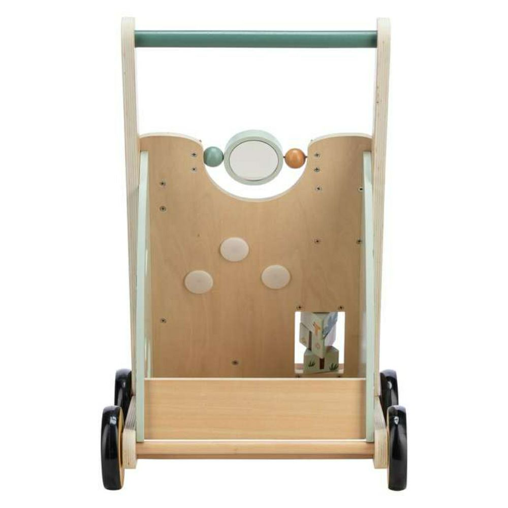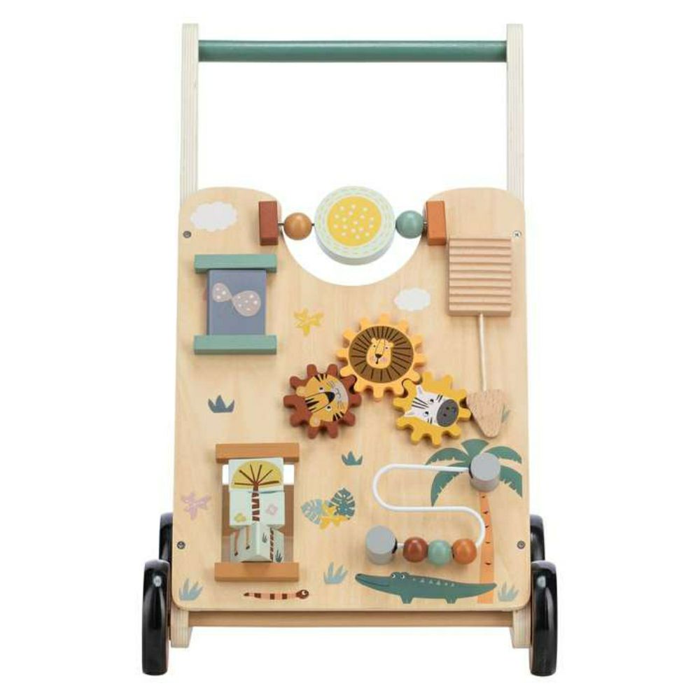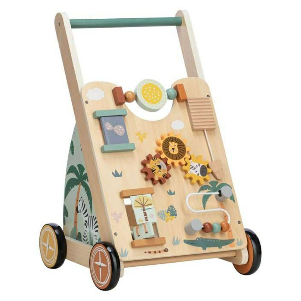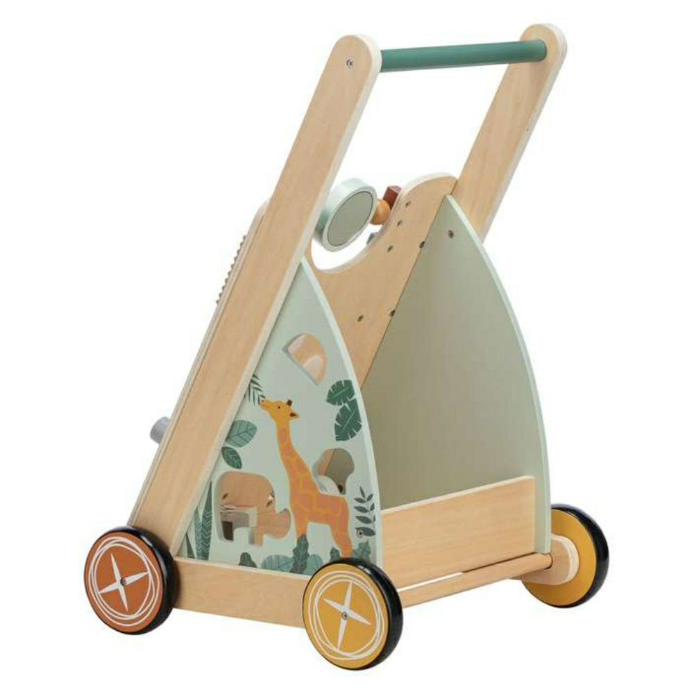 Со успешно движење низ просторијата, тој стекнува нови искуства, запознава нови предмети, ги гледа познатите од поинаква перспектива, а во исто време ја надоградува својата самодоверба. Дрвената шеталка е додаток и играчка во едно, бидејќи покрај функцијата на шетач, има и површина за игра на предната страна.