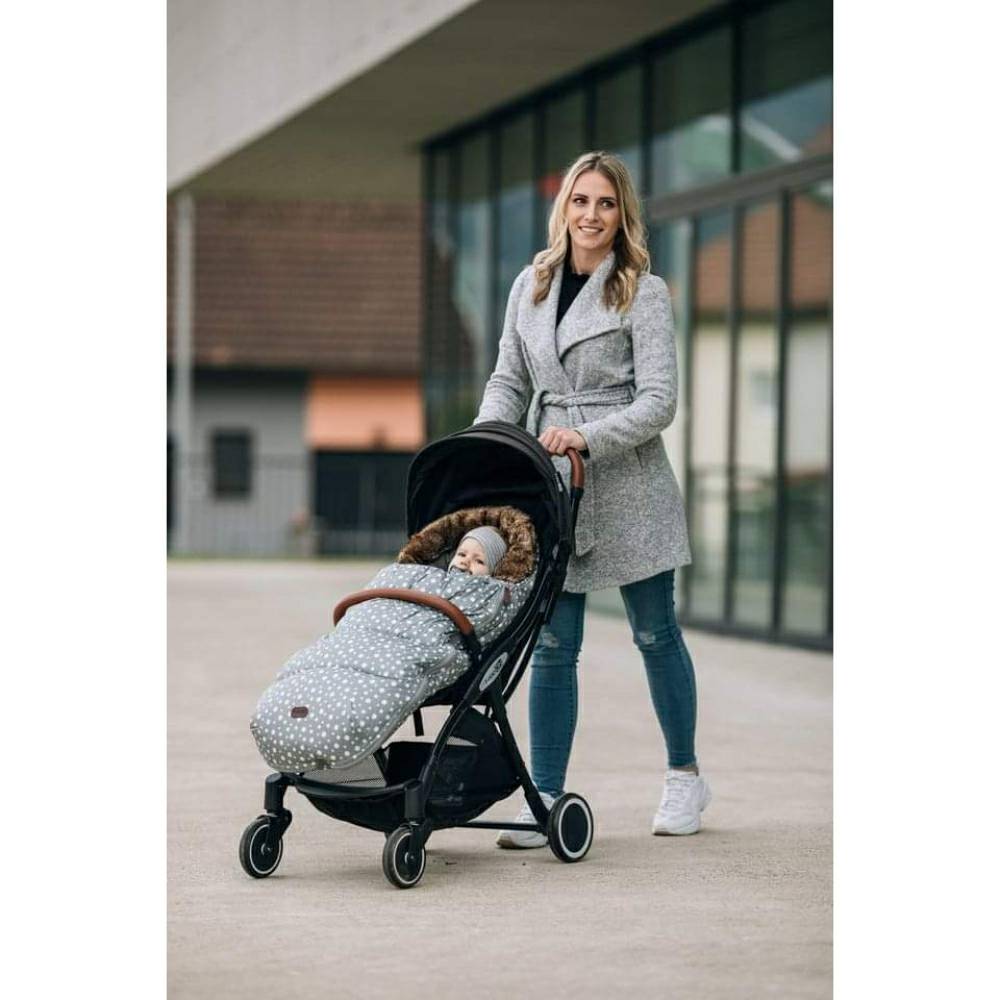 Зимската вреќа е со бионичка прекривка и отстранливо вештачко крзно. Нејзината големина е прилагодлива, благодарение на двата патенти, а детето лесно и едноставно може да се смести во количка додека ја носи.