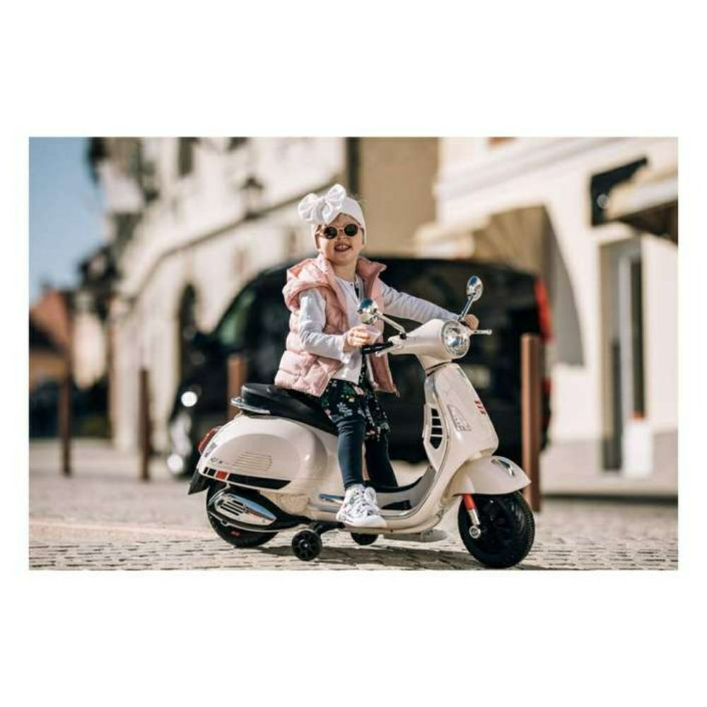 Туке е електричната веспа, за најјаките фраери во градот! Електричната веспа е направена по лиценца на Vespa (Piaggio). Веспата е дизајнирана за деца и нивните прекрасни искуства на отворено. Воланот има: копче за музика, копче за сирена, копче за вклучување/исклучување, копче напред/назад и мултимедијален центар.