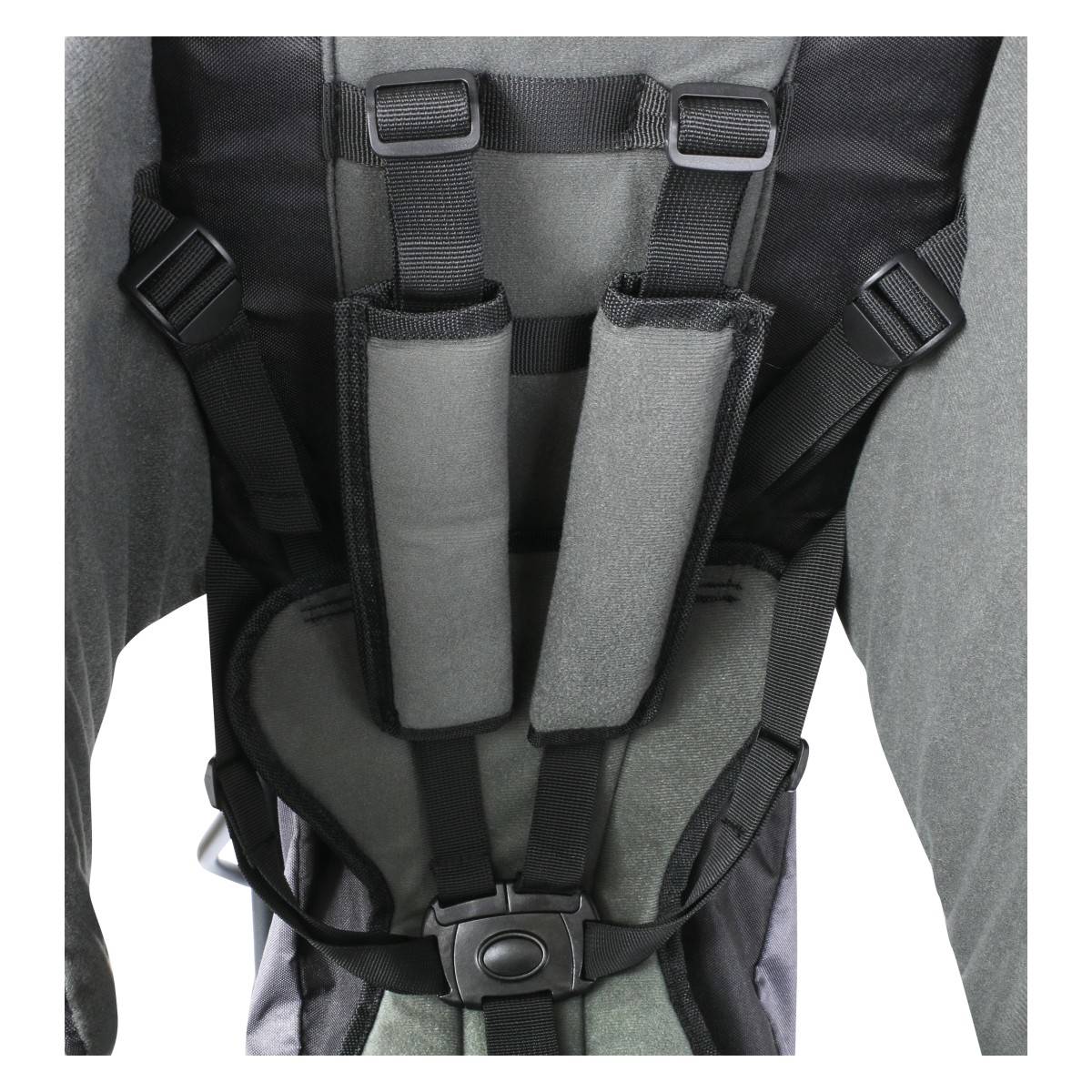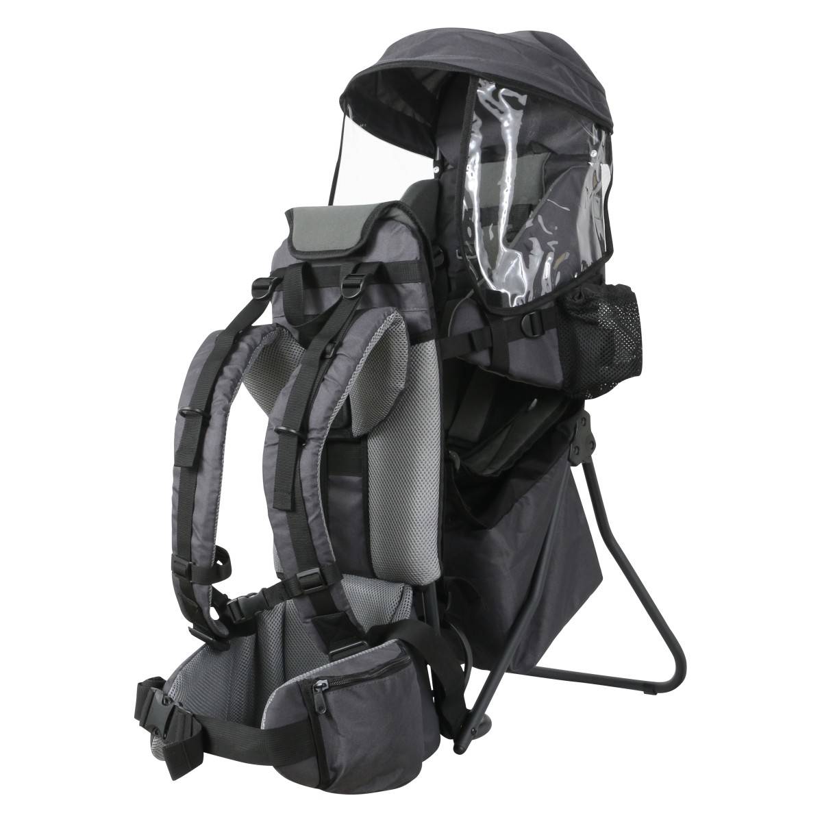 - Ранец со едноставен систем на преклопување, алуминиумски држач и екстремна стабилност, отстранлив покрив со заштита од дожд, изработен од водоотпорен 600D oxford материјал и со меки ремени за рамо обезбедува удобност за детето и родителот дури и за време на долгите планинарења.