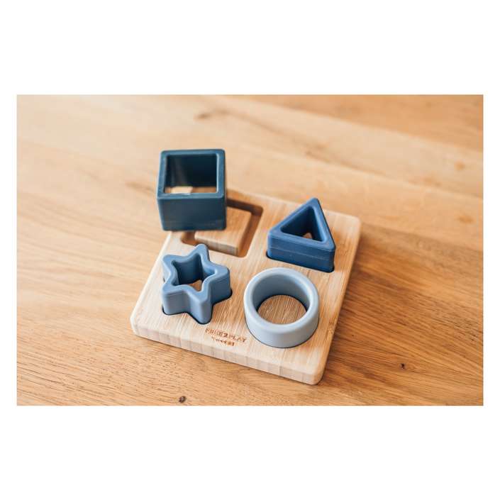 - Комплетот содржи 4 елементи од различни форми и бои и дрвен послужавник со вдлабнатини направени специјално за овие форми.
