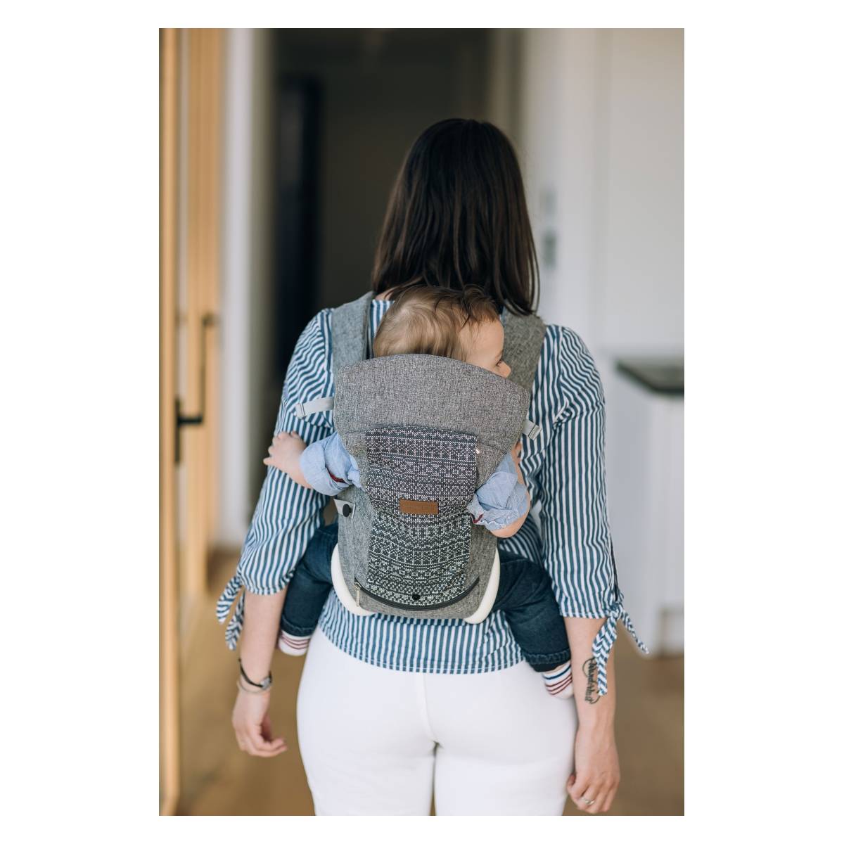Ја прераспределува тежината на детето од горниот дел на грбот, рамената и рацете рамномерно околу половината и на тој начин го намалува притисокот врз 'рбетот на возрасните за време на носењето.Седиштето обезбедува цврста полица на која ќе седи детето безбедно и удобно и која ја поддржува неговата растечка тежина од дното.
