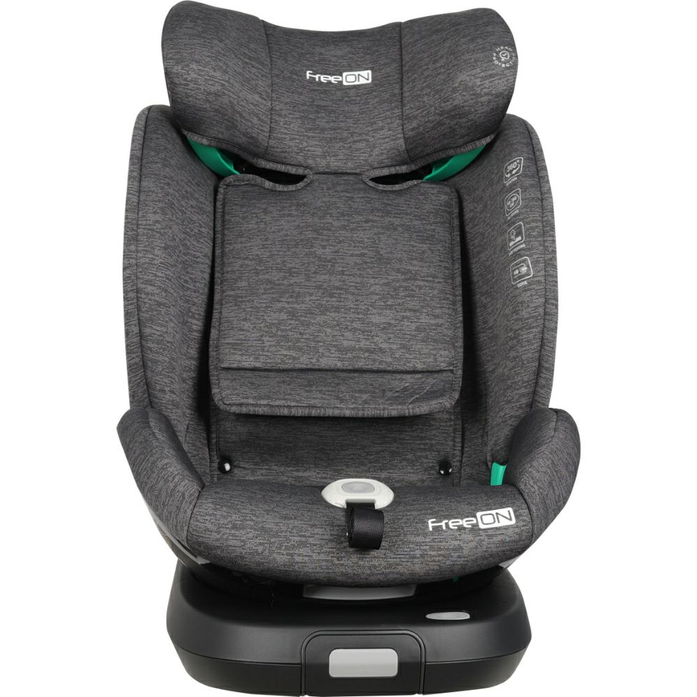 FreeON Space е модерно дизајнирано седиште за автомобил кое не само што изгледа добро, туку има и напредна безбедносна технологија, удобност и лесно користење. Ги исполнува најновите безбедносни и функционални стандарди. Висината на столчето и неговиот потпирач за грб може да се прилагодат по желба, а може да се користи од 40 cm до 150 cm од висината на детето. Благодарение на можноста за вртење на седиштето за 360°, влегувањето на детето во возилото ќе биде брзо и многу лесно. Меки облоги со мемори пена и пријатни материјали го издигнуваат изгледот на автомобилското седиште на помодерен, а во исто време му обезбедуваат на детето максимална удобност.