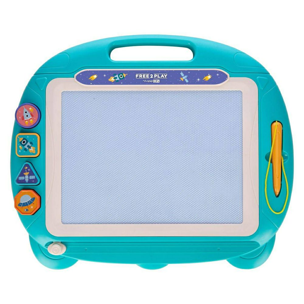- Забавни начини за создавање и учење со магнетна табла за боење. За да го избришете вашето уметничко дело, лизгајте го копчето на другата страна и таблата е подготвена за нови креации направени со вклученото пенкало кое никогаш не се носи. Вклучува 4 магнетни печати во различни форми и пенкало.