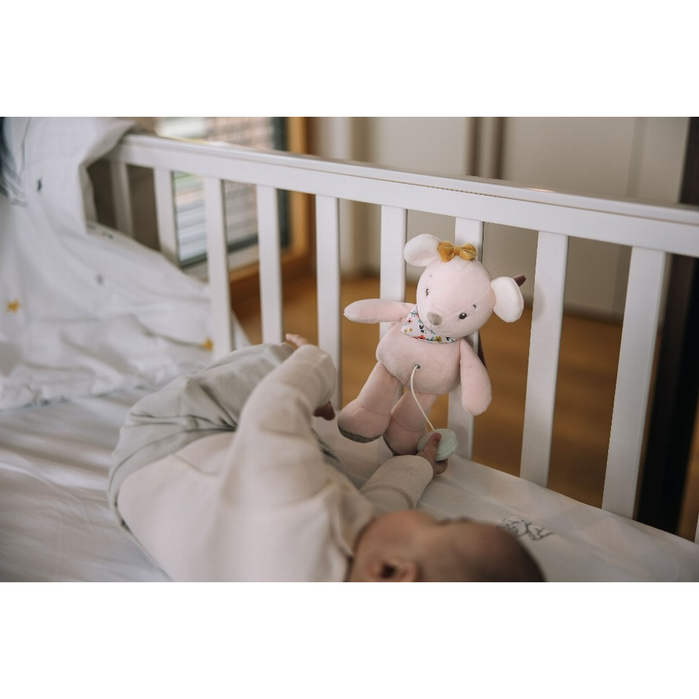 Дизајниран да обезбеди удобност и забава за бебиња и мали деца. Се одликува со меко и гушкачко глувче со вградена музичка кутија што свири смирувачка приспивна песна. Совршено за доенчиња и мали деца, помагајќи им да се чувствуваат смирени и опуштени, особено за време на спиење или за време на дремката