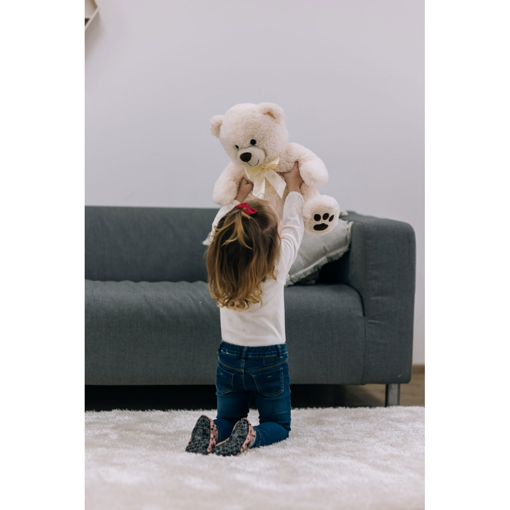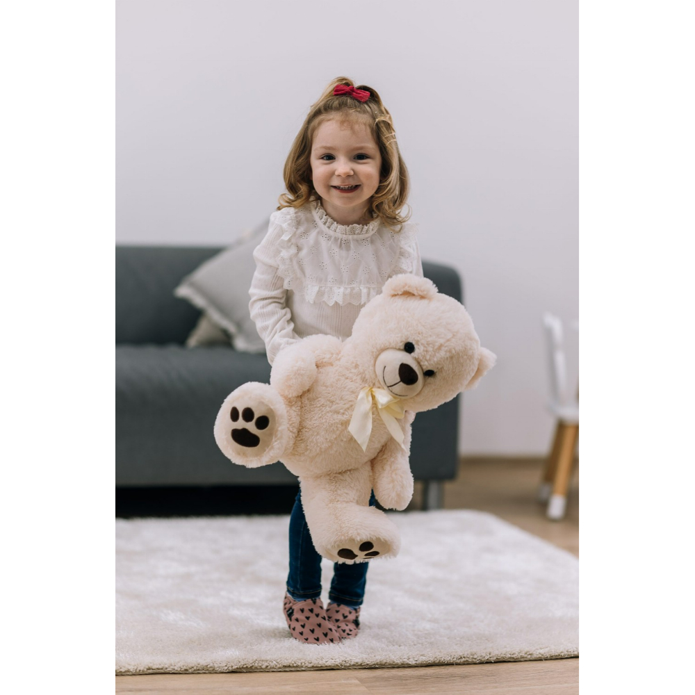 - Cuddly е нежно мече кое брзо ќе ги освои срцата на сите генерации. Неговиот мек и удобен материјал ќе внесе топлина во секоја прегратка, додека неговите слатки кафени очи и пријателска насмевка ќе внесат насмевка на лицето на вашето дете и на вашето. Висок е 38 см во седечка положба. Елегантната машна околу вратот и отпечатоците од шепи на неговите стапала го прават уште посладок. Без разлика дали сакате да го подарите како подарок за посебна пригода или да го задржите за себе или за вашето дете, Cuddly е совршен избор. Cuddly секогаш ќе биде одличен придружник, носејќи топлина, радост и бескрајни прегратки.