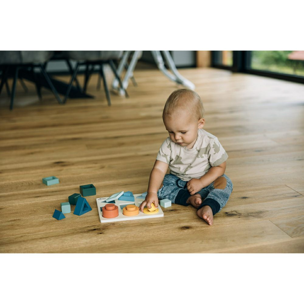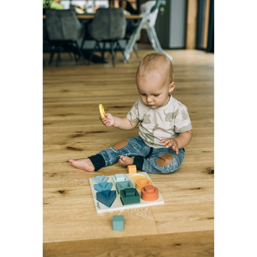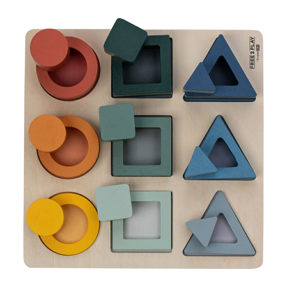- Детето ќе ги подреди обоените форми на основата. Тоа е забавен начин да научите за различни форми и бои.