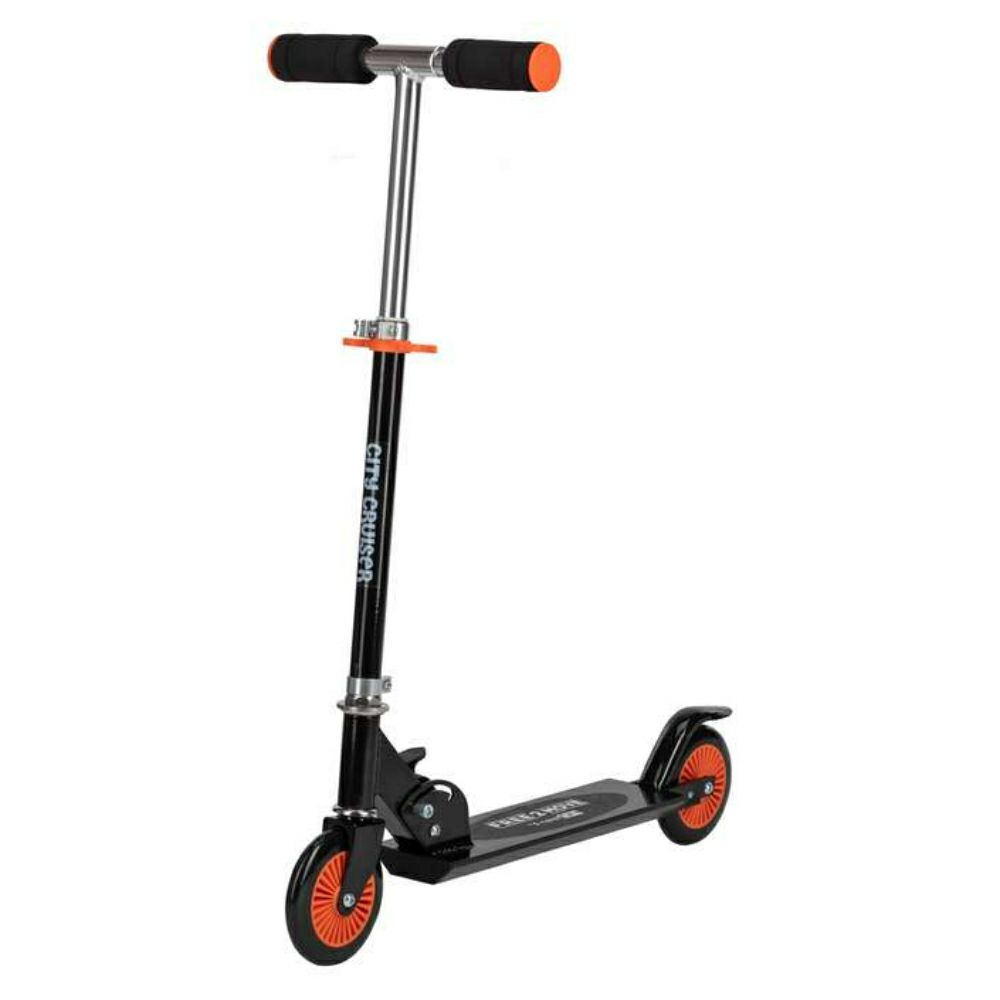- Тротинетот го поттикнува движењето на детето и помага да се развие чувство на рамнотежа и моторни вештини. Тротинетот има обложени рачки, две тркала и кормило што се прилагодува на висина. По употреба, можете едноставно да го преклопите скутерот - вратот на скутерот се наведнува кон држачот, телескопската рачка се преклопува и скутерот е преклопен. Максималното оптоварување на скутерот е 50 kg.
