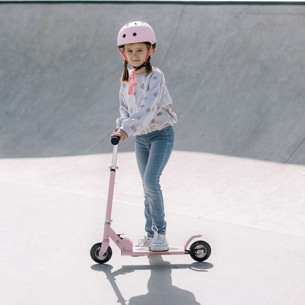 - Тротинетот го поттикнува движењето на детето и помага да се развие чувство на рамнотежа и моторни вештини. Тротинетот има обложени рачки, две тркала и кормило што се прилагодува на висина. По употреба, можете едноставно да го преклопите скутерот - вратот на скутерот се наведнува кон држачот, телескопската рачка се преклопува и скутерот е преклопен. Максималното оптоварување на скутерот е 50 kg.