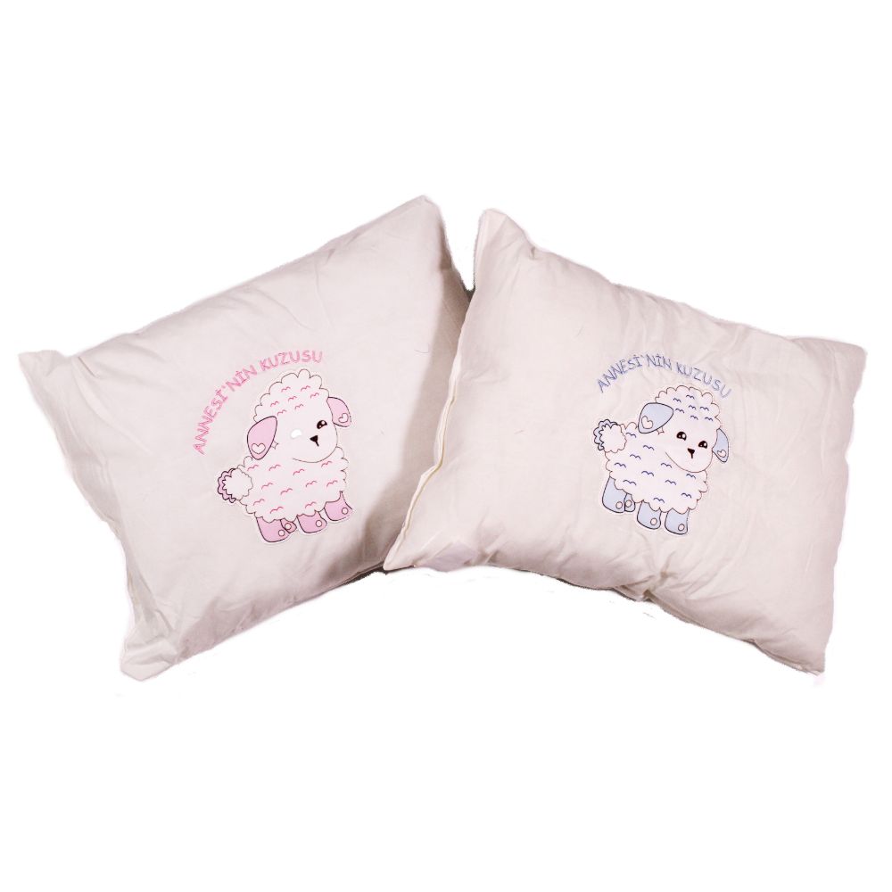 Достапни се бели перничиња со розев или син детаљ.