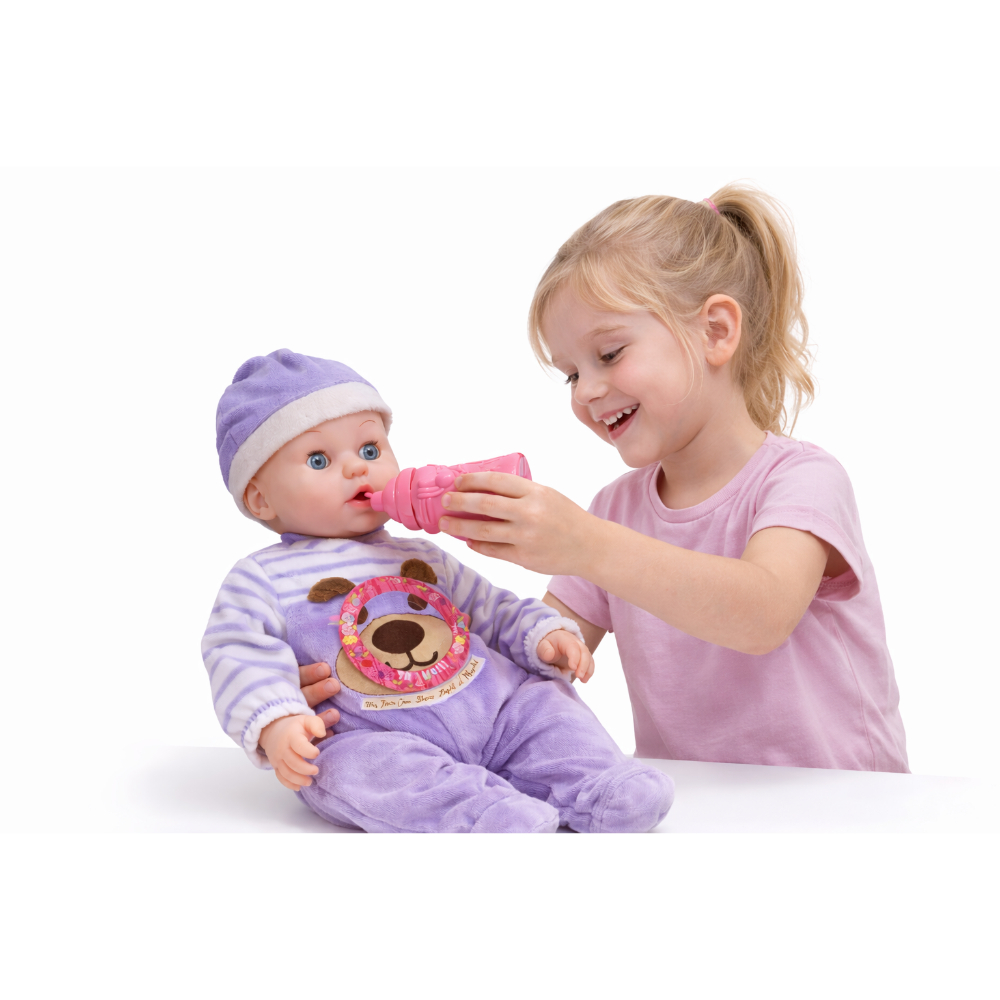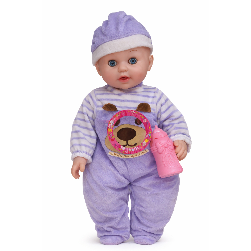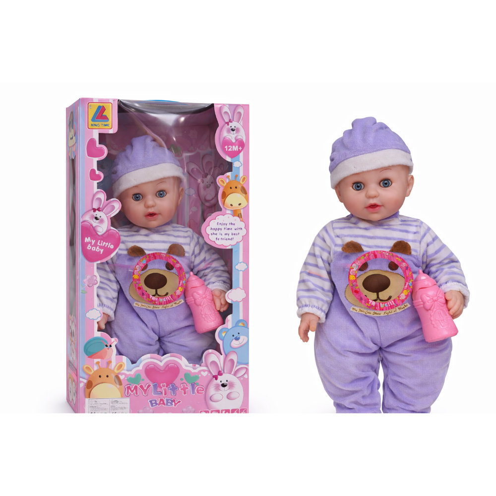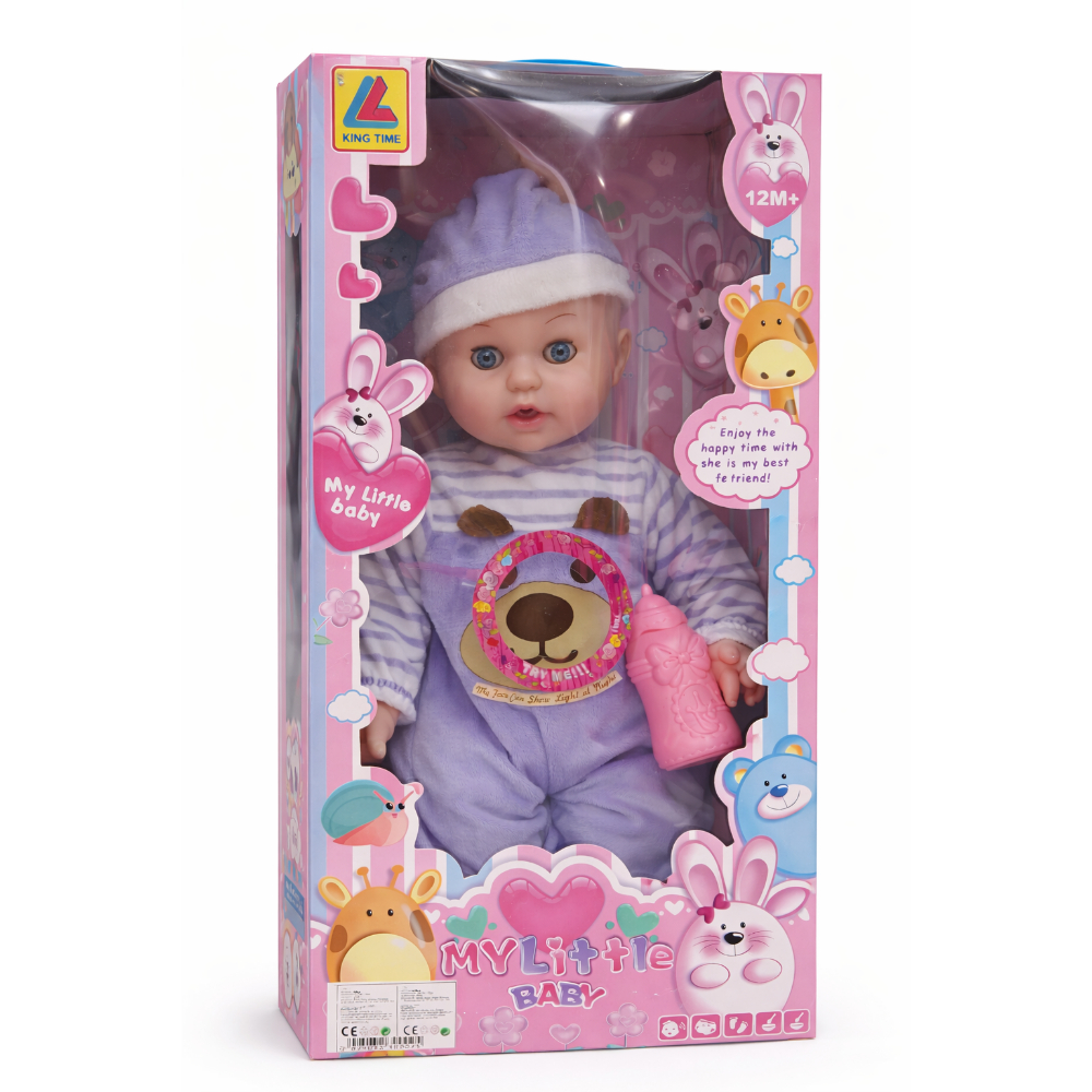 Прекрасна бебе кукла која ќе стане омилената играчка на секое дете. Куклата доаѓа со слатко облекче, капче и шишенце за игра. Децата можат да ја хранат, да ја гушкаат и да се грижат за неа како за вистинско бебе, што ја прави играта уште позабавна и поучна.