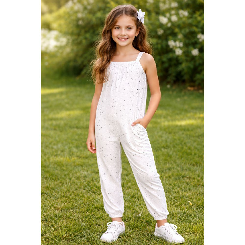 Елегантен и удобен комбинезон совршен за топли денови! Со нежен дезен и лесен крој, идеален е за секојдневни активности и прошетки.