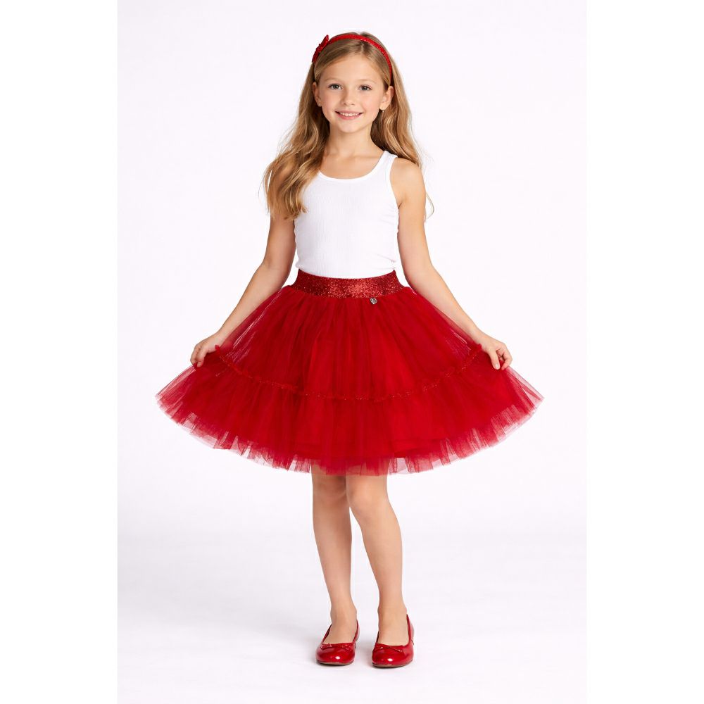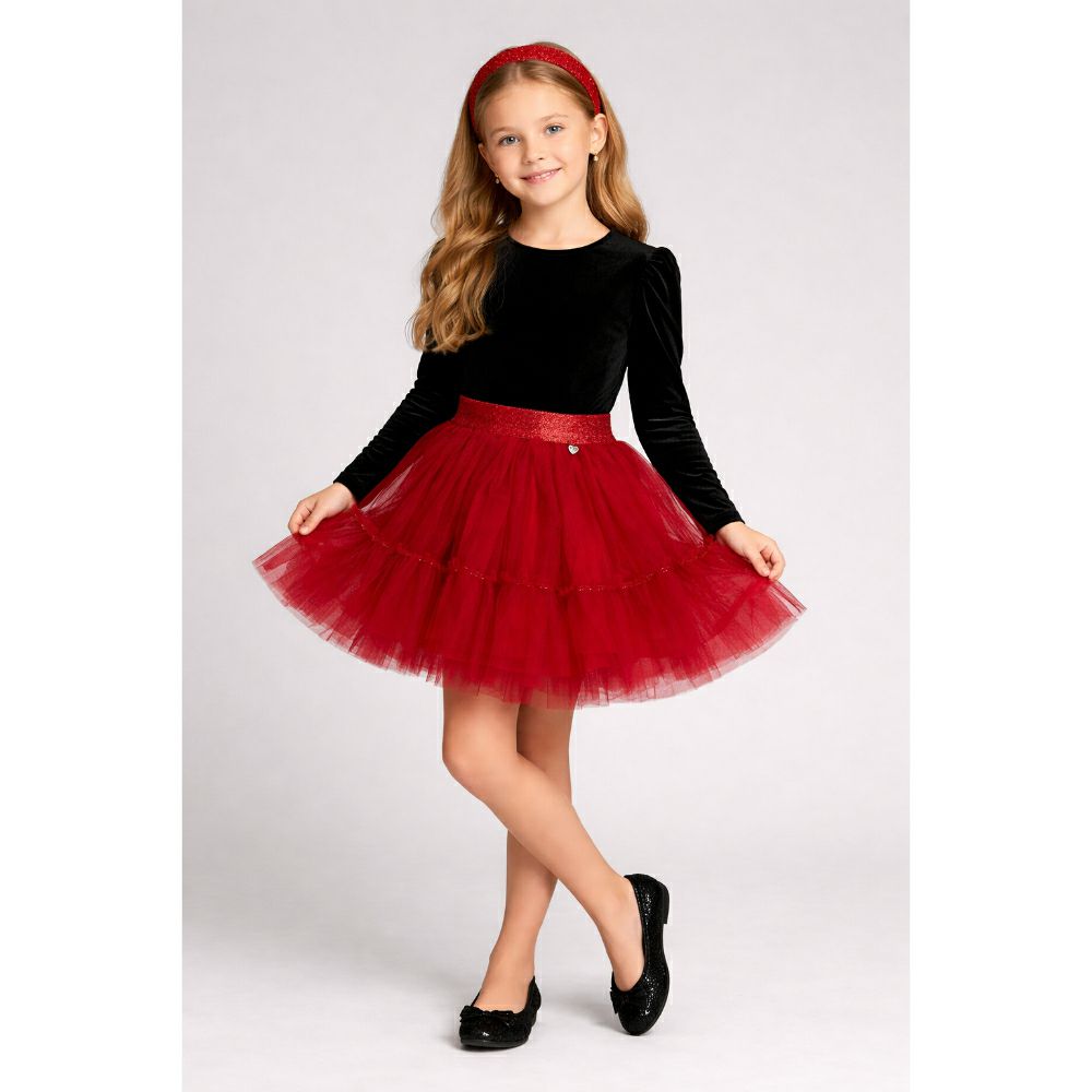 • Елегантна и богата детска сукњичка изработена од повеќеслоен тул со светкав појас. Дизајнирана да создаде волумен и впечатлив изглед – совршена за специјални моменти и мали принцези.