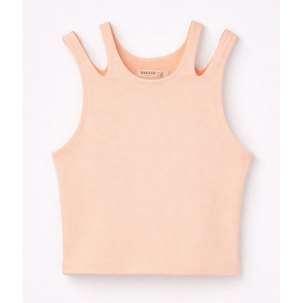 • Модерен и минималистички топ со елегантен крој, дизајниран за тренди и удобен изглед. Со нежна праска боја и интересни прерамки, ова парче е совршен избор за летни комбинации.