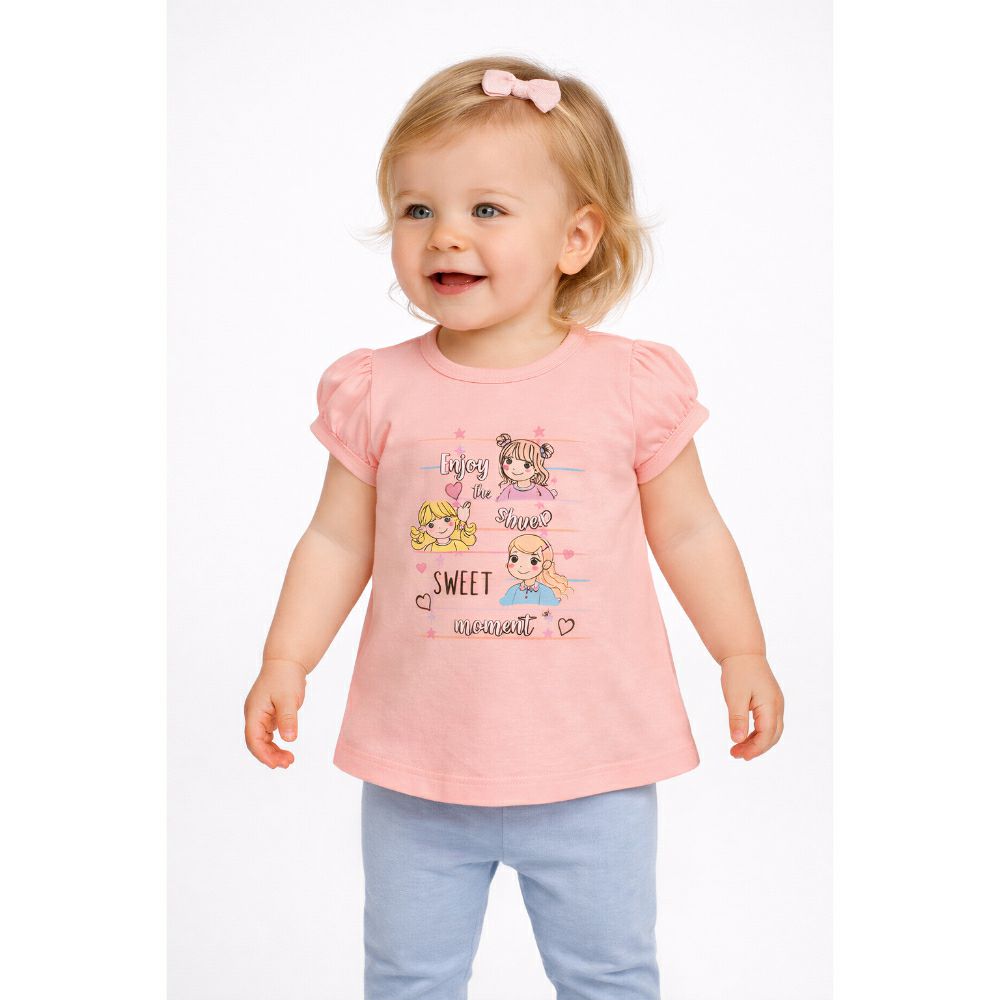 • Нежна и слатка маичка за најмалите, дизајнирана со весел принт и удобен крој. Со романтичен „Sweet Moment“ дизајн и нежна розева боја, ова парче е совршено за секојдневно носење.