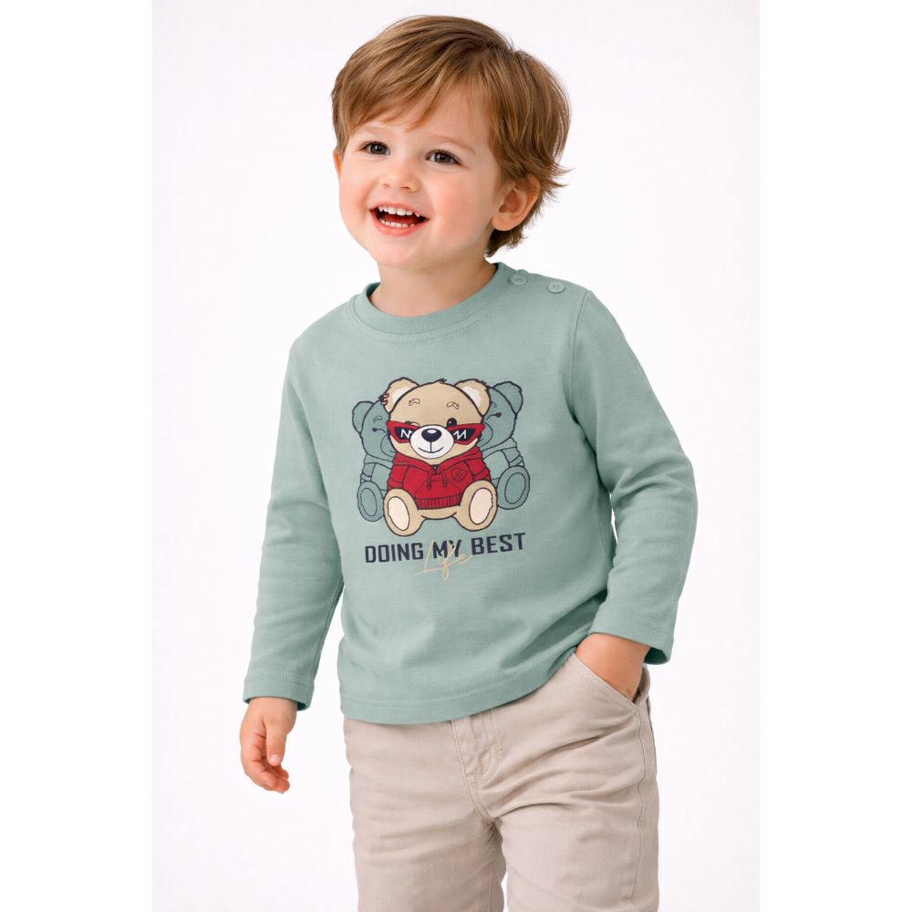 • Мека и удобна маичка за бебиња, изработена од квалитетен памук кој обезбедува целодневна удобност и слобода на движење. Модерниот принт со мече и натпис „DOING MY BEST“ ѝ дава стилски и разигран изглед.