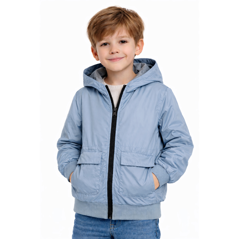 Другата страна е памучна во сива боја со коси отвори за џепчиња.