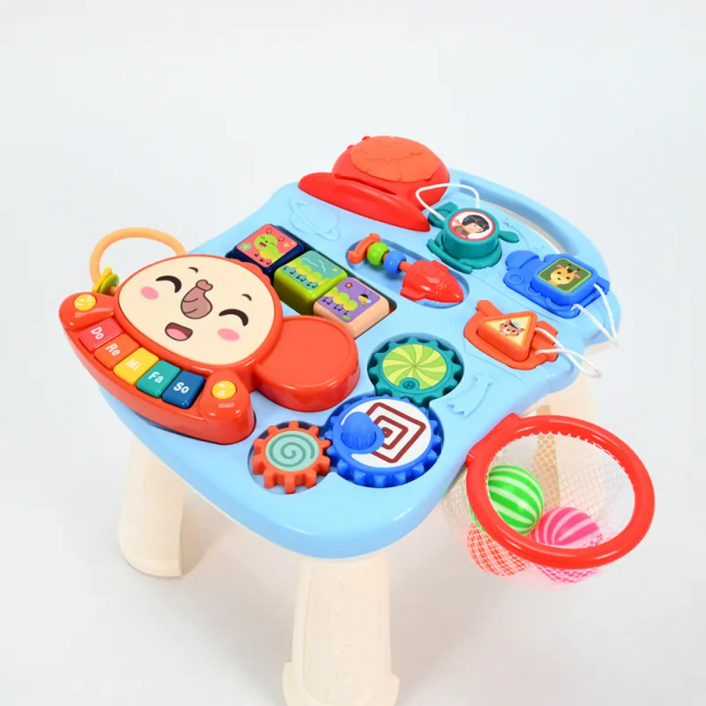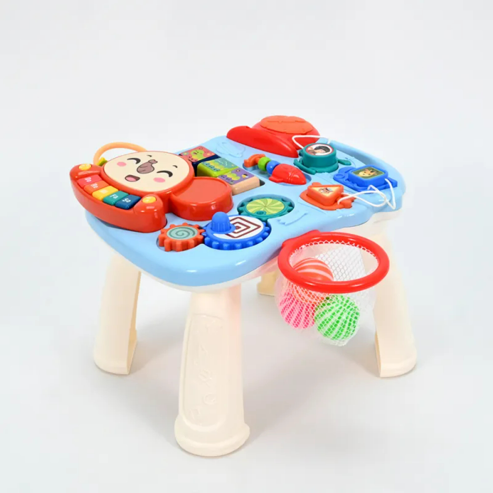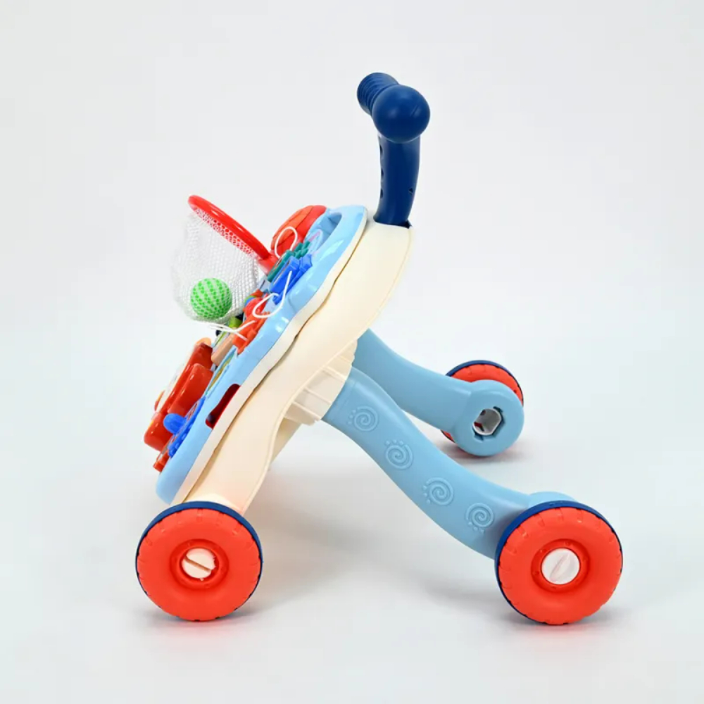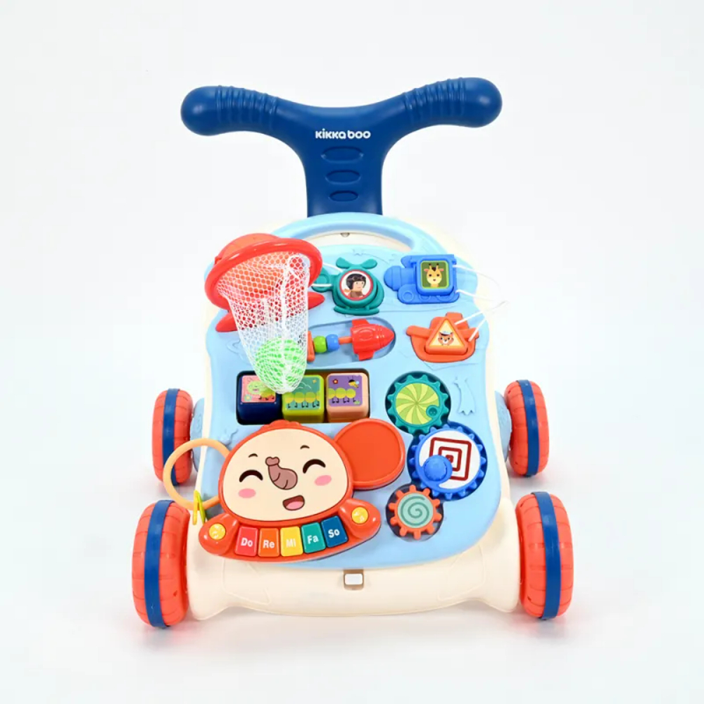• Музичка проодувалка со рачка на четири тркала која ќе му помогне на вашето дете стабилно да го направи првиот чекор. На самата проодувалка има повеќе играчки за дополнителна забава на вашето дете. Од 6-9 месеци седи и си игра со играчките а од 9-18 месеци стои и оди со проодувалката. Може да се користи како играчка за на креветче или како едукативна масичка.