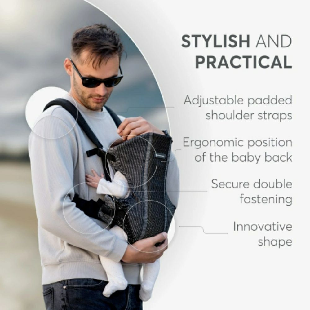 • 3 позиции за носење на бебето. Со лицето свртено кон родителот 3-12 месеци.Со лицето напред-кога бебето е веќе спообно да си ја држи главата 3-12 месеци.На грбот на родителите 6-12 месеци.