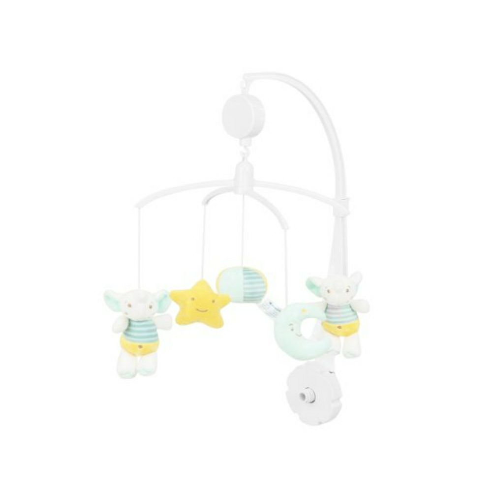 • Производот има рачен механизам на навивање која свири нежна смирувачка мелодија и кадифни играчки кои се ротираат.
