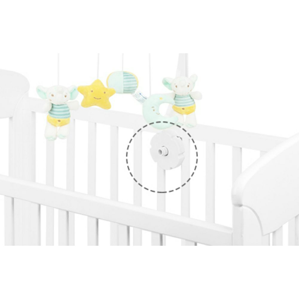 • Музичката вртелешка може да се прикачи на: столче за хранење, количка и креветче.
