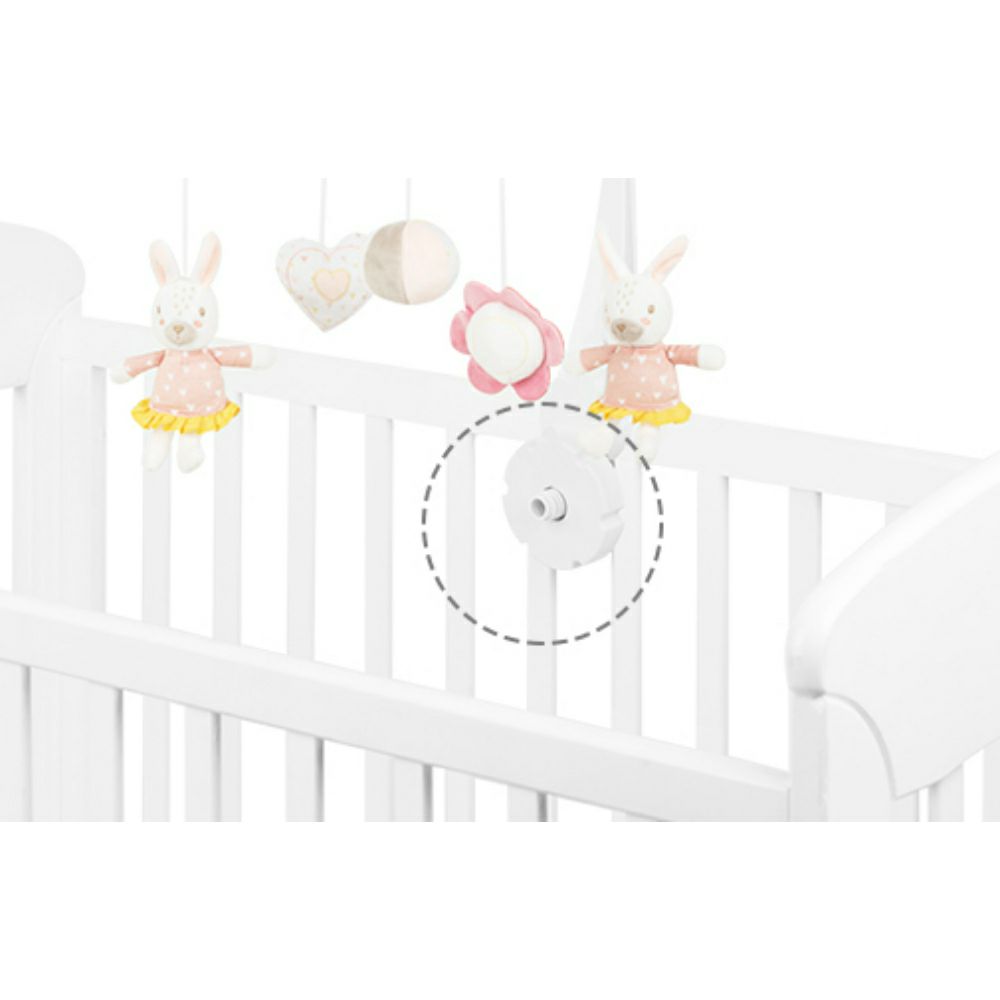 • Музичката вртелешка може да се прикачи на: столче за хранење, количка и креветче.