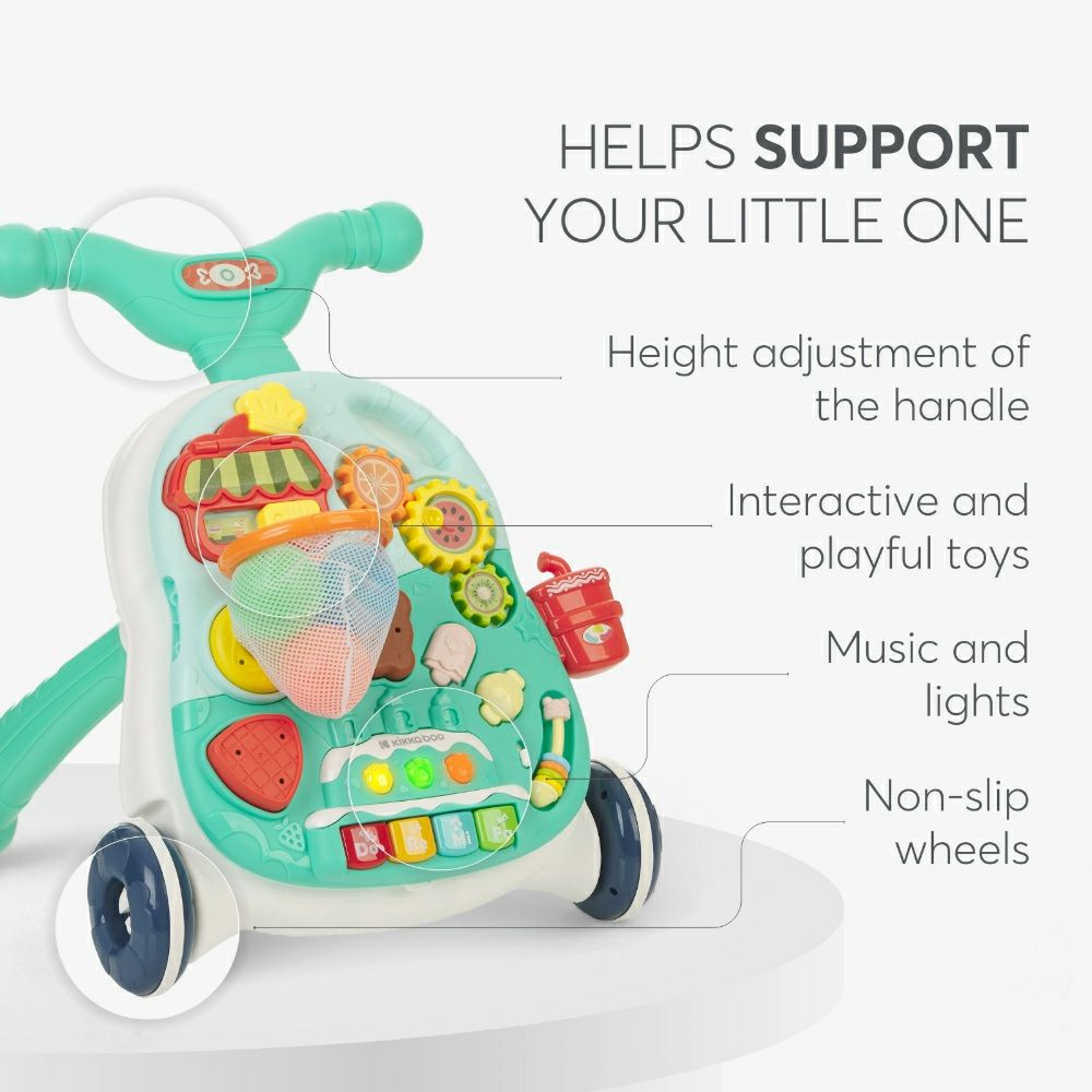 Разбудете ја љубопитноста на вашето дете и поттикнете ги неговите први чекори со шетачот за туркање CANDY PARTY, дизајниран за деца над 12 месеци. Овој иновативен шетач со туркање ја комбинира забавата на традиционалниот шетач со возбудата на масата за играње со активности, што го прави разновиден додаток на времето за игра на вашето дете.