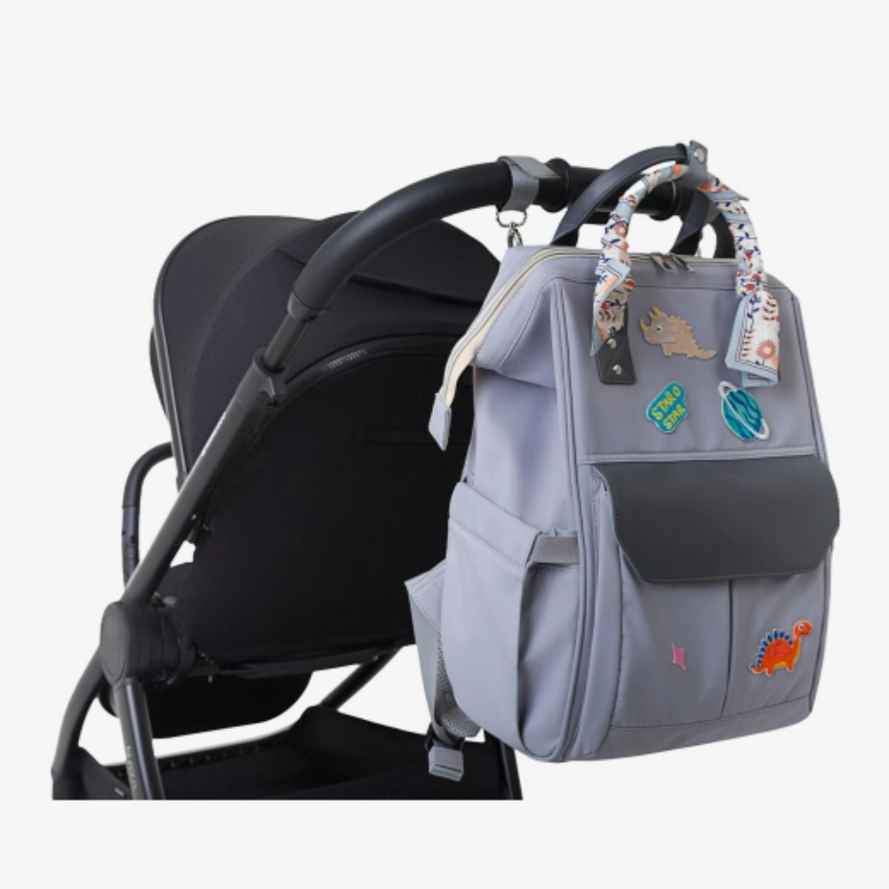 • Лесно се закачува на рачката на количката.