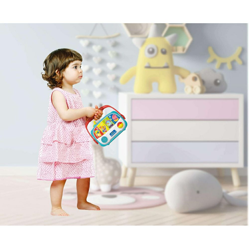 - Покрај мелодиите, звуците и различните светлосни ефекти кои го привлекуваат вниманието на децата, има и мали физички интеракции кои помагаат во развојот на когнитивните и фината моторика.