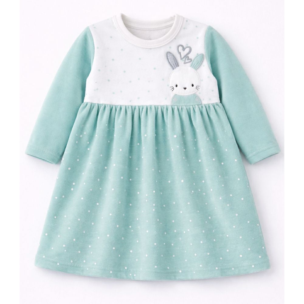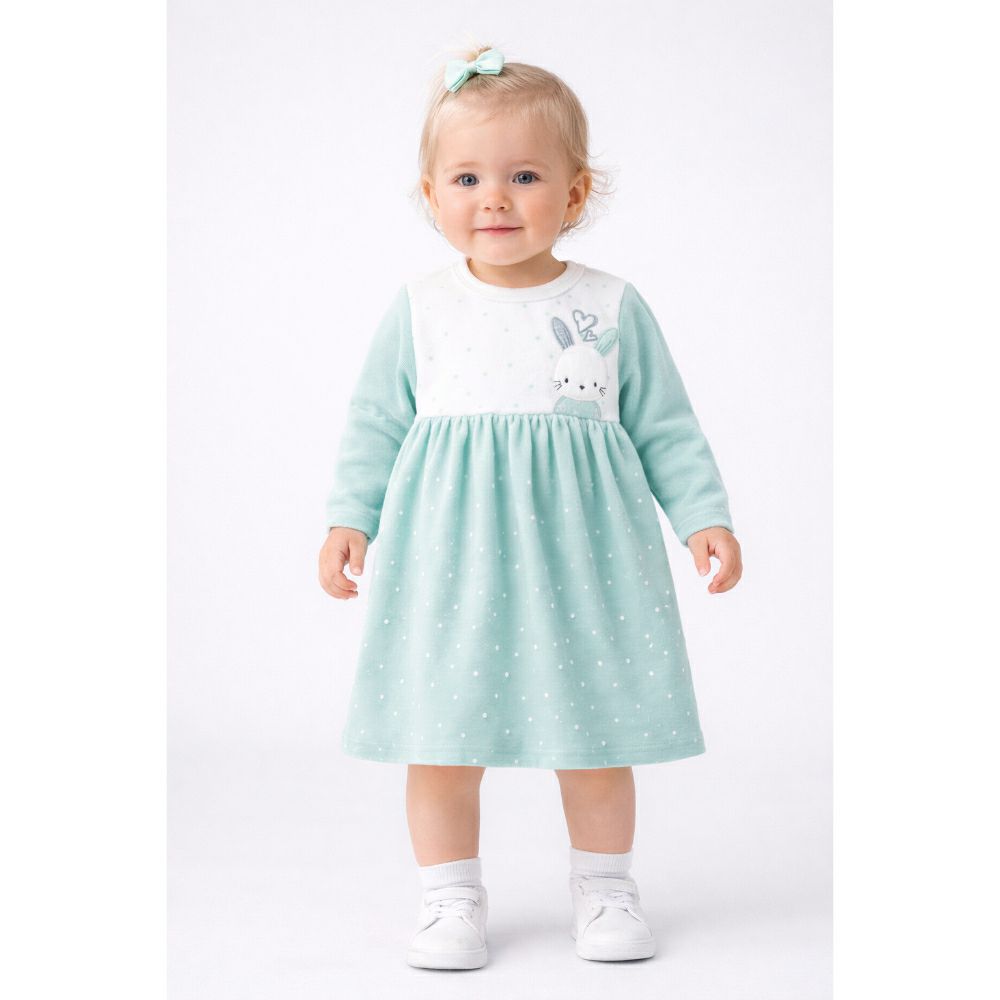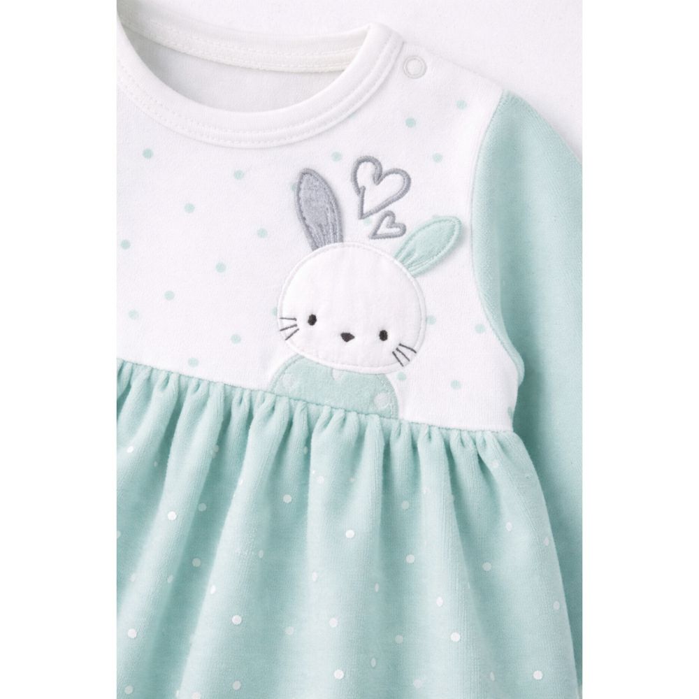 Преслатко детско фустанче со нежен дизајн и апликација од зајаче, идеално за секојдневно носење. Изработено од мек и пријатен материјал, обезбедува удобност и слобода на движење за вашето најмило.