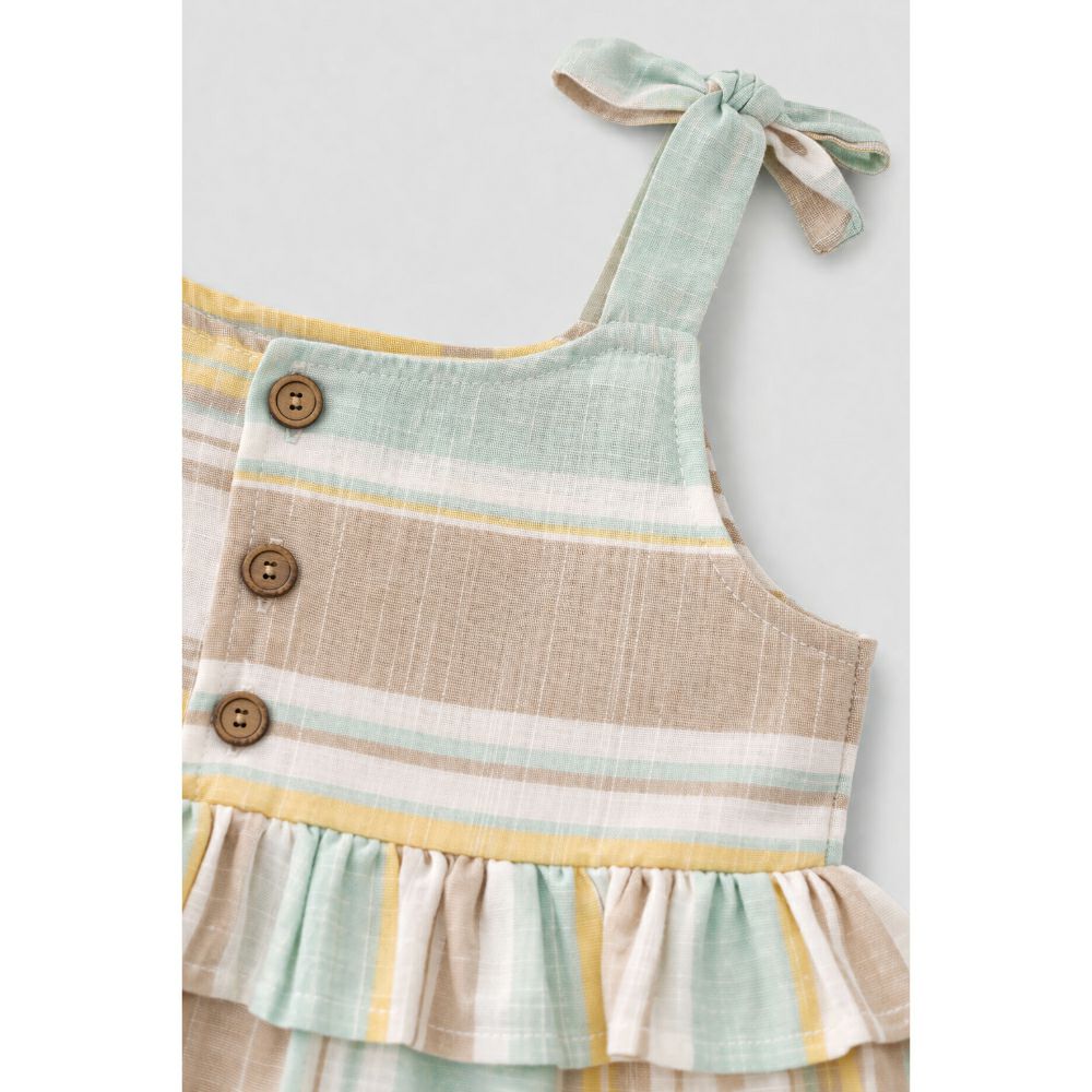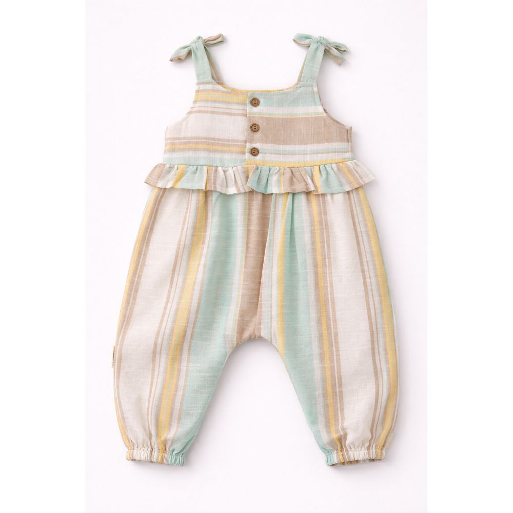 - Лесен и разигран бебешки комбинезон со пастелни линии. Совршен за летни денови и максимална удобност.