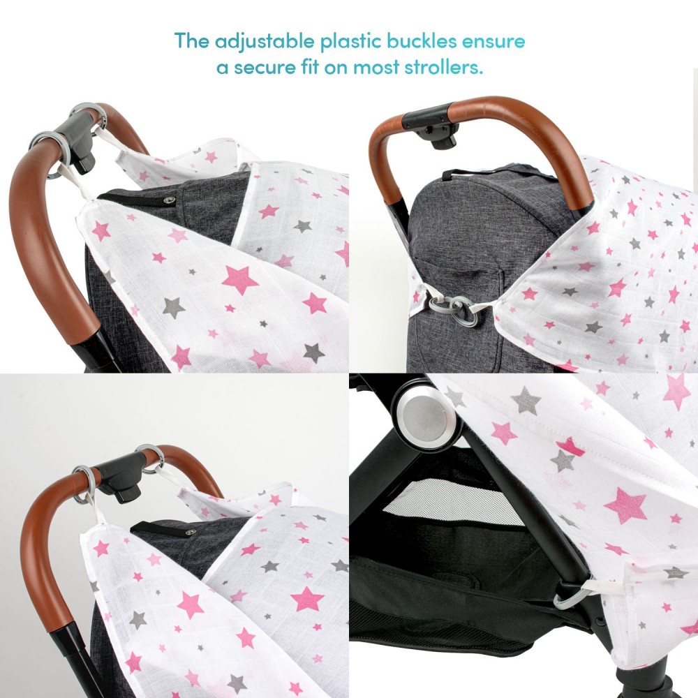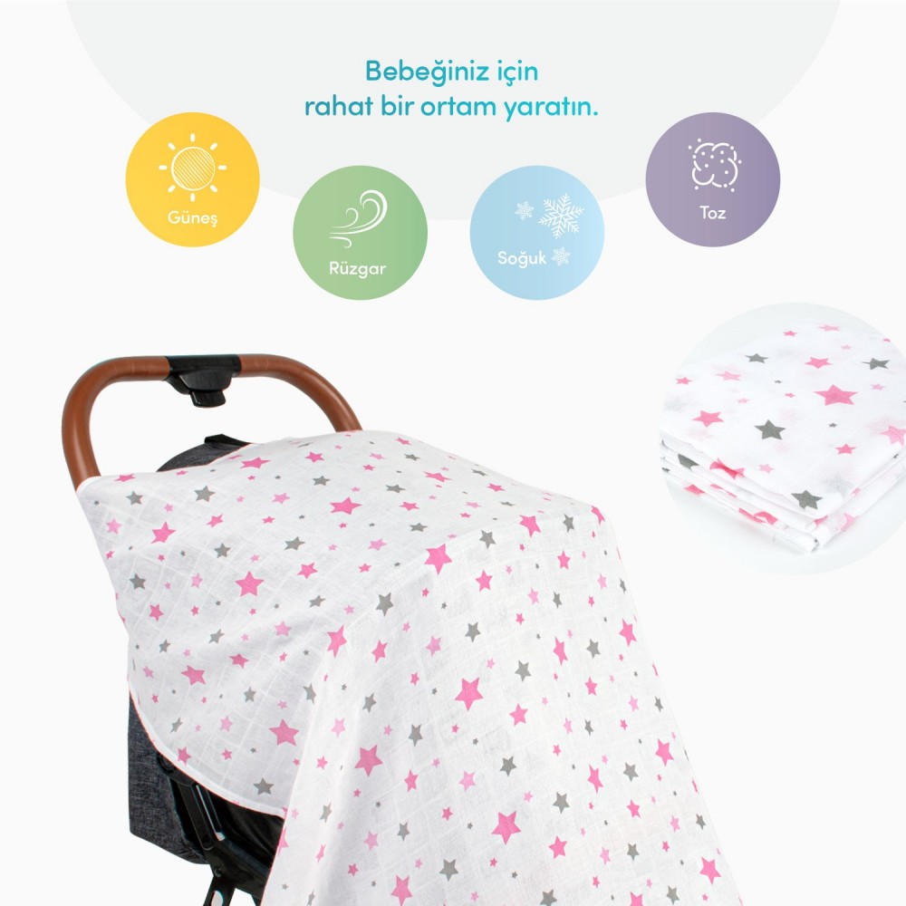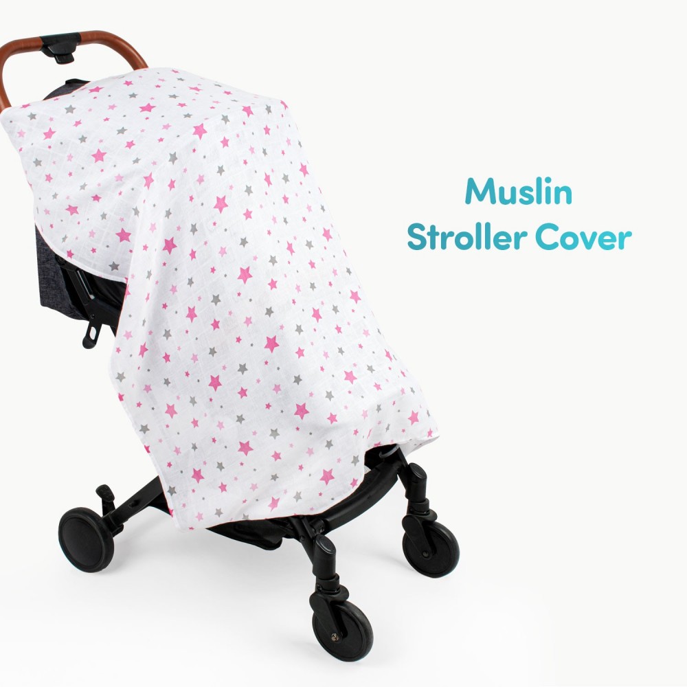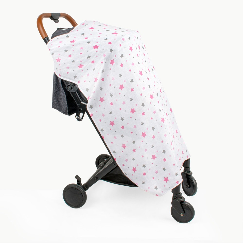 Муслин прекривка за количка Pink Star