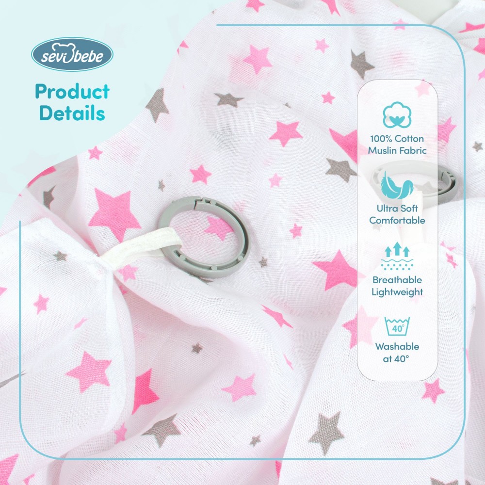 Изработен е од 100% памучна ткаенина од муслин и обезбедува одлична циркулација на воздухот, одржувајќи го вашето бебе ладно и удобно.