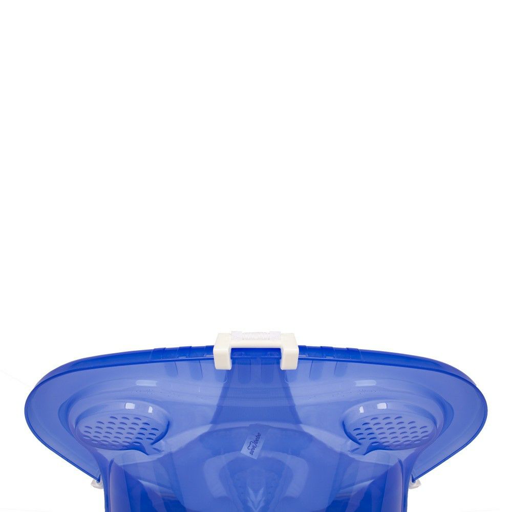 Ако сакате да го бањате вашето бебе во вода, можете да ставите малку вода во млаз вода без да ги прицврстите пластичните куки и да ја ставите главата на бебето во високиот дел од мрежата или на потпорниот дел.